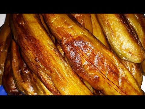 - Use a cup of oil to fry the aubergines on medium heat, ensuring that you turn the aubergines halfway through to cover both sides