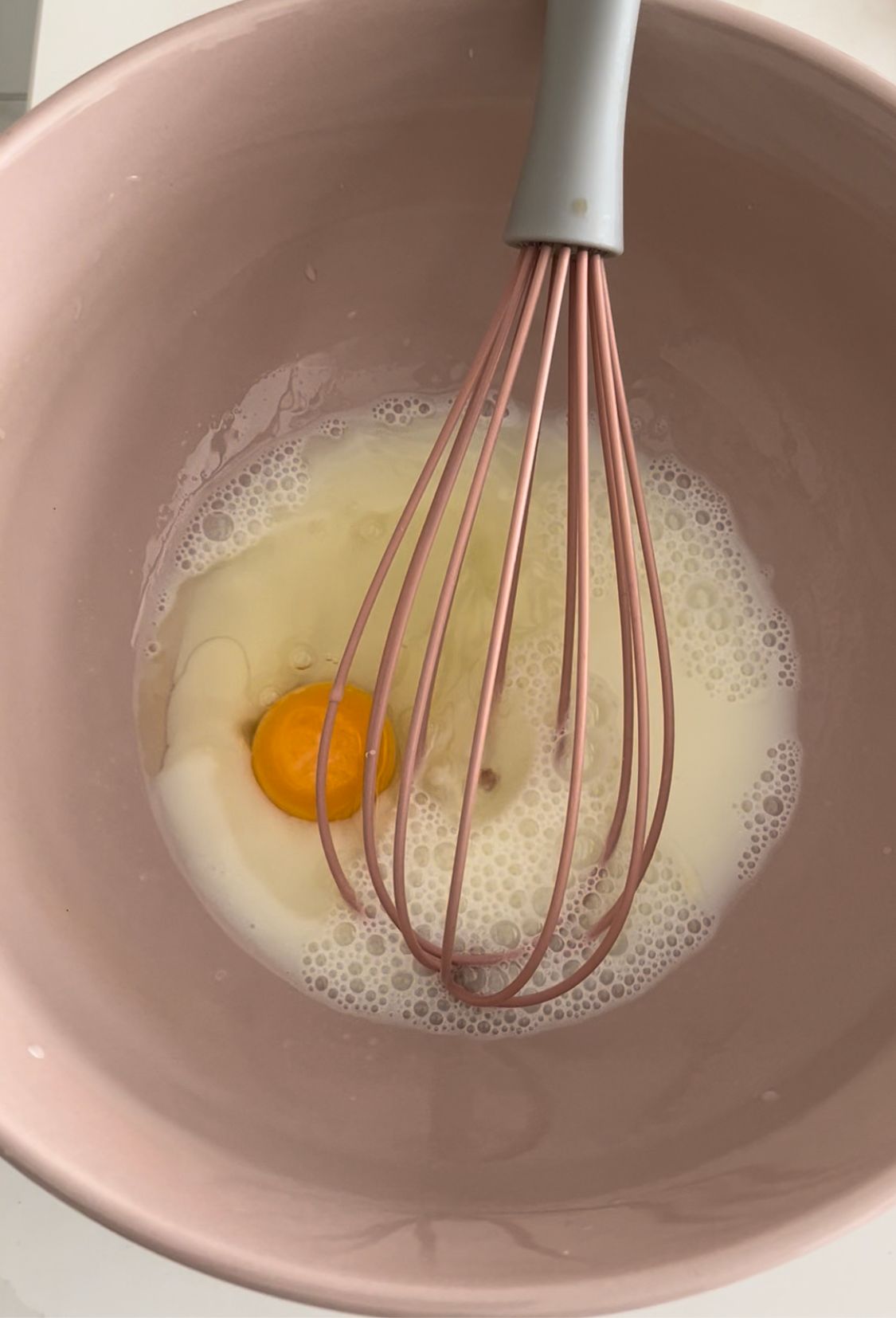 - Add the sugar to the milk and rest aside to cool down before breaking the eggs into the mix and stirring