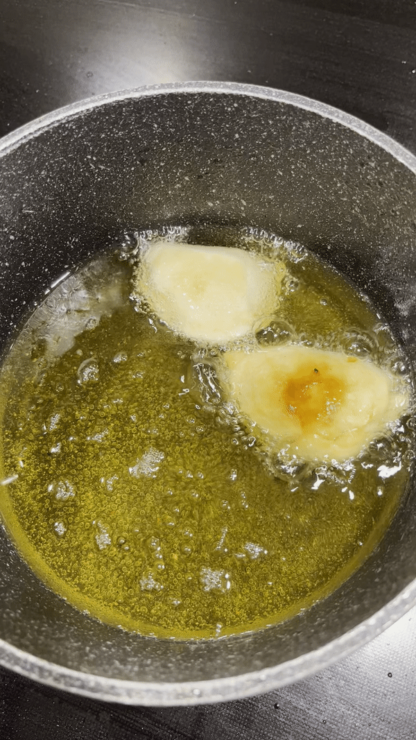 - You may use an oil fryer to fry these or alternatively use a pot and fill up with oil (take care not to have any splashed on you!) and ensure it is extremely hot before you throw in the pastries to be fried - if the oil is not hot enough the pastries won't puff up