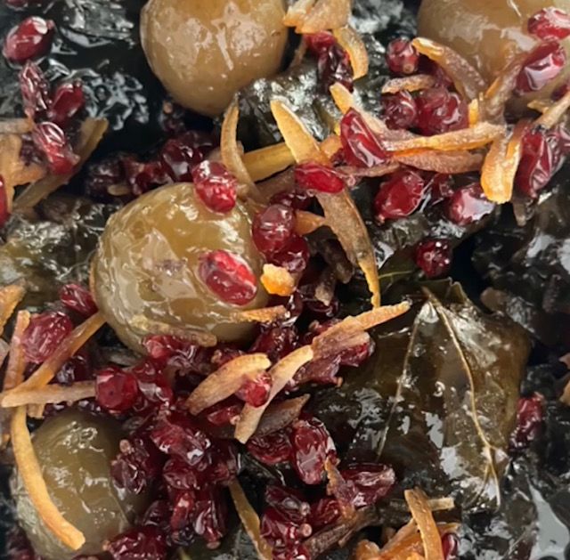 Decorate the cooked Dolmehs with marmalade orange slivers and barberries or green gauge plums. For the barberries to taste as yummy as possible, use melted butter in a small pan over medium-low heat and add barberries, sugar and 1 tsp reserved saffron water. Cook, stirring, 2 minutes to just warm through.
